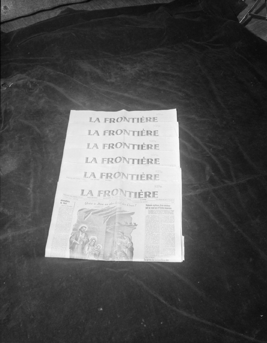 Photographie d'une page du journal "La Frontière", 16 janvier 1953, Archives nationales à Gatineau, Fonds Champlain Marcil, (07H,P174,S6,D4290), Marcil, Champlain.