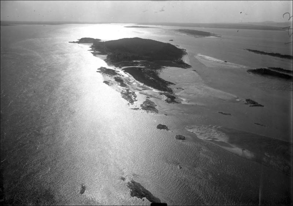 Grosse-Île dans l'archipel de l'Isle-aux-Grues, aussi appelé archipel de Montmagny, [Vers 1927], Archives nationales à Québec, Fonds Ministère des Terres et Forêts, (03Q,E21,S110,SS1,SSS1,PM7), Cie aérienne franco-canadienne.