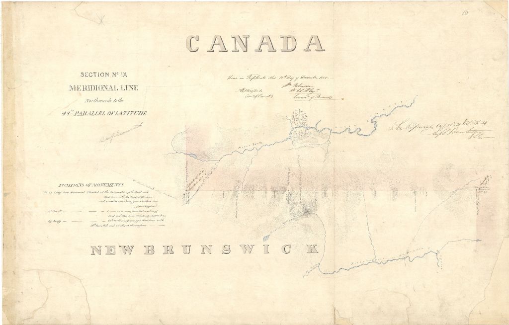 Frontières Canada / Nouveau-Brunswick. Section no. 9 Meridional Line northwards to the 48th parallel of latitude.