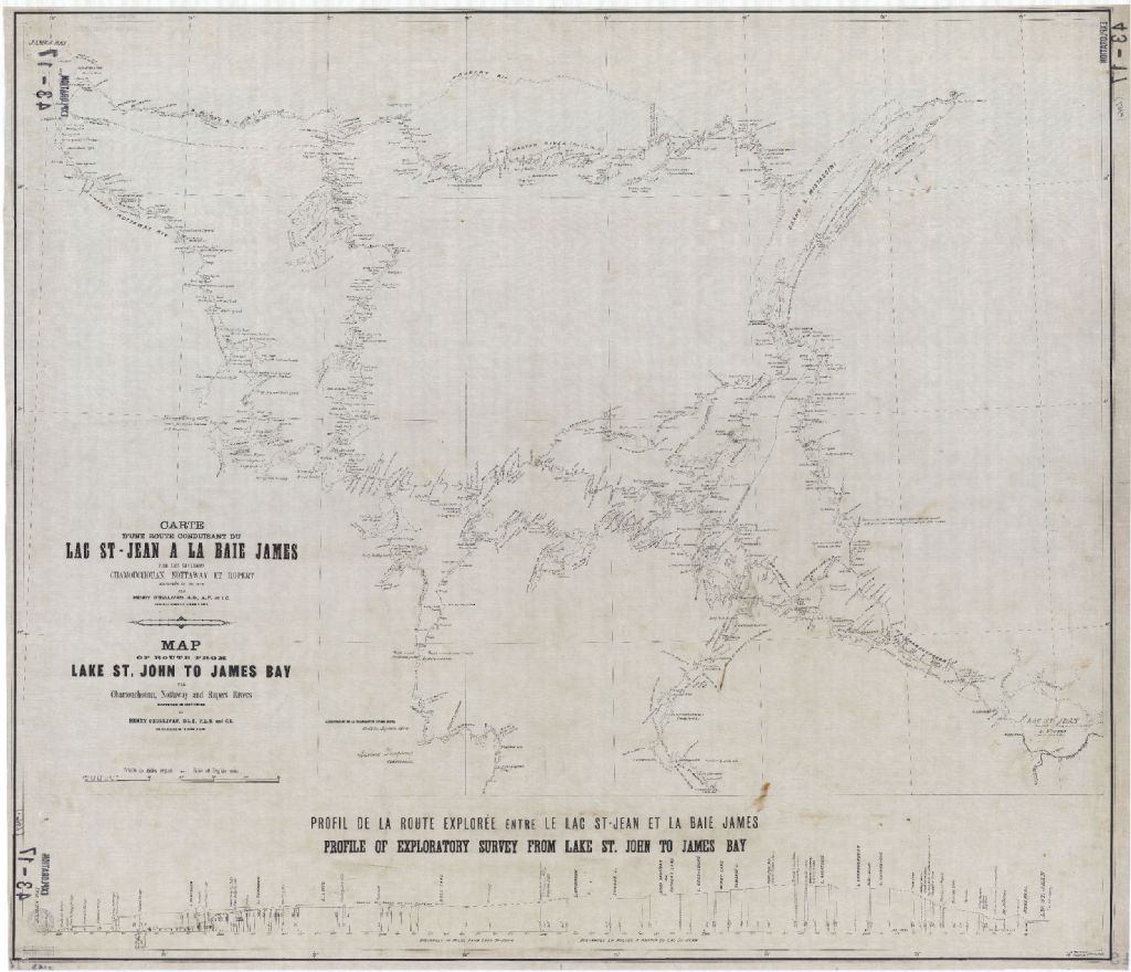 Plan d'une route conduisant du Lac Saint-Jean à la Baie James par les rivières Chamouchouan, Nottaway et Rupert explorée en 1897-98-99 par Henry O'Sullivan.