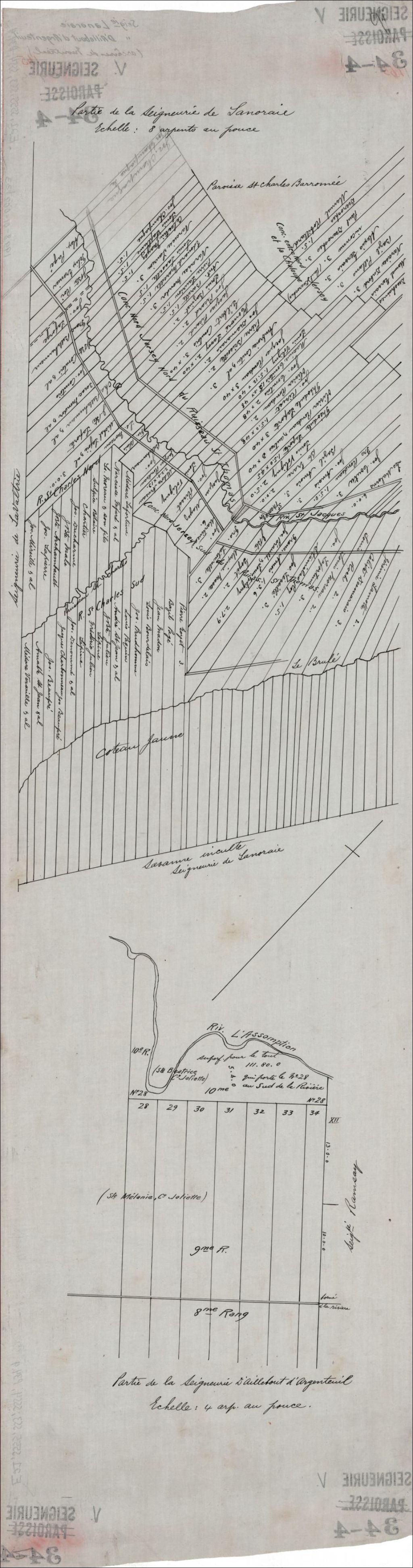 Plan d'une partie de la seigneurie de La Noraye. Plan d'une partie de la seigneurie D'Aillebout d'Argenteuil.