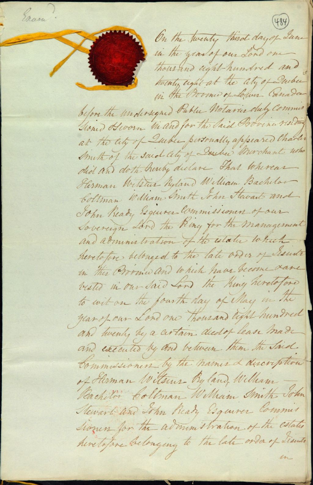 Abandon d'une terre située en la seigneurie de Notre-Dame-des-Anges par Charles Smith, marchand de Québec, au profit de Sa Majesté le Roi, par-devant les notaires publics