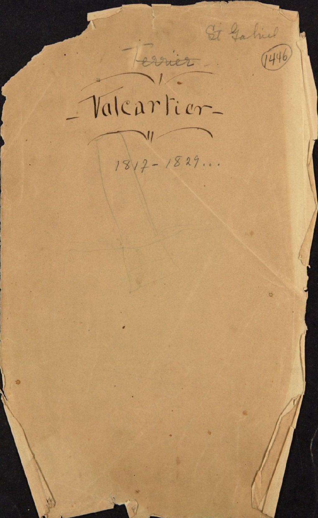 Censier de Valcartier, comprenant le nom des censitaires, le numéro de lot possédé, la concession où ce lot est situé, un historique des transactions de la propriété, de même que les rentes dues, 1817 - 1829, Archives nationales à Québec, Fonds Ministère des Terres et Forêts, (03Q,E21,S64,SS5,SSS6,D1446).