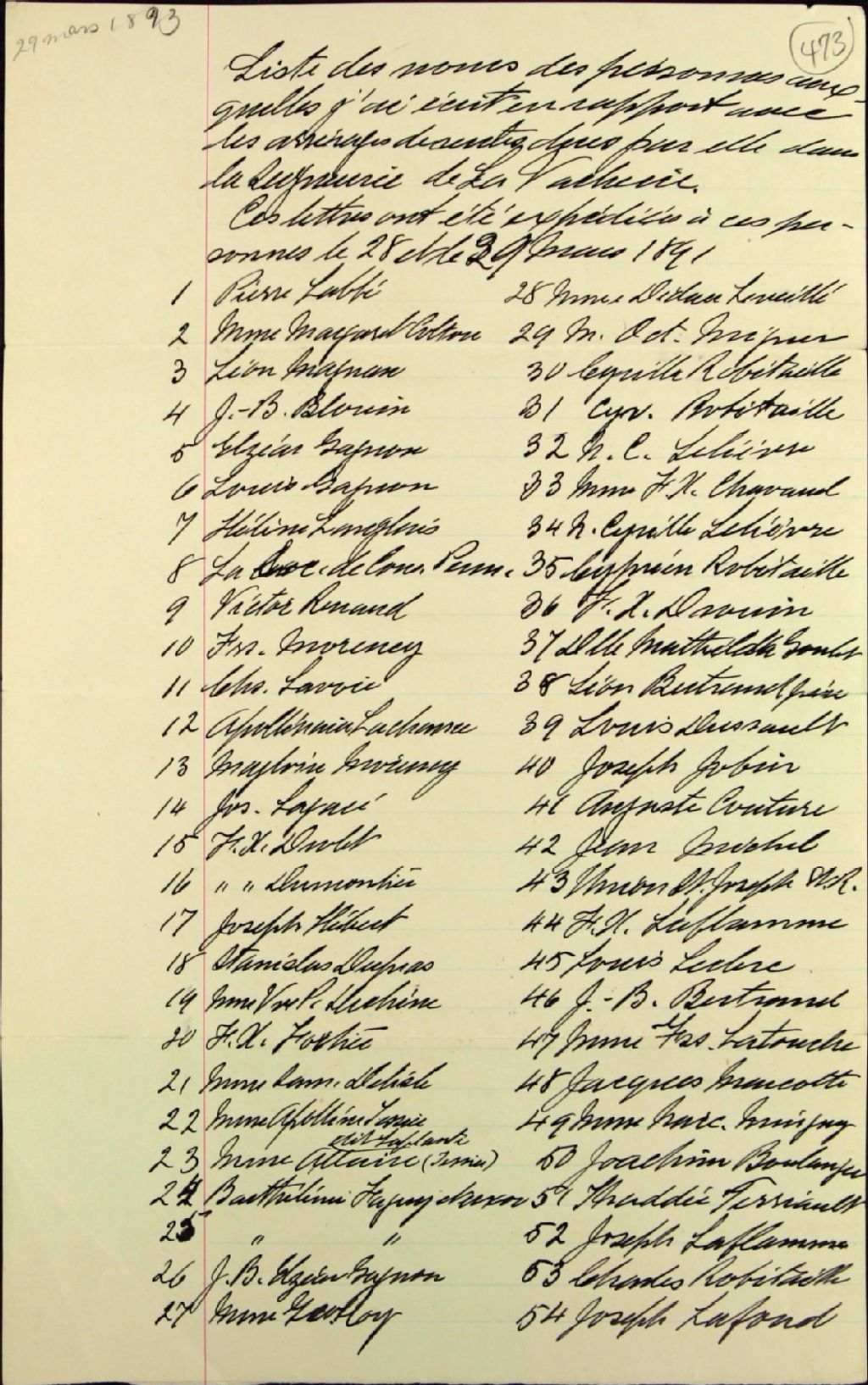 - Ces lettres ont été expédiées à ces personnes les 28 et 29 mars 1891