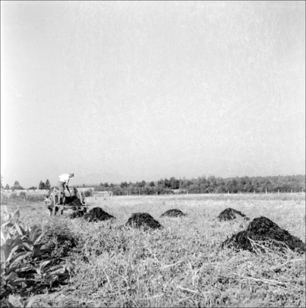 - Le dossier porte sur l'Isle-aux-Coudres. Nous apercevons l'épandage (E6,S7,SS1,P200464) et la récolte du varech (E6,S7,SS1,P200470) ainsi que la pêche sur la grève (E6,S7,SS1,P200465 à E6,S7,SS1,P200467 et E6,S7,SS1,P200469). Nous remarquons le poulailler de Raymond Desmeules (E6,S7,SS1,P200471), le véhicule muni de chenilles aux roues (E6,S7,SS1,P200473) et le site appelé la roche pleureuse (E6,S7,SS1,P200474)