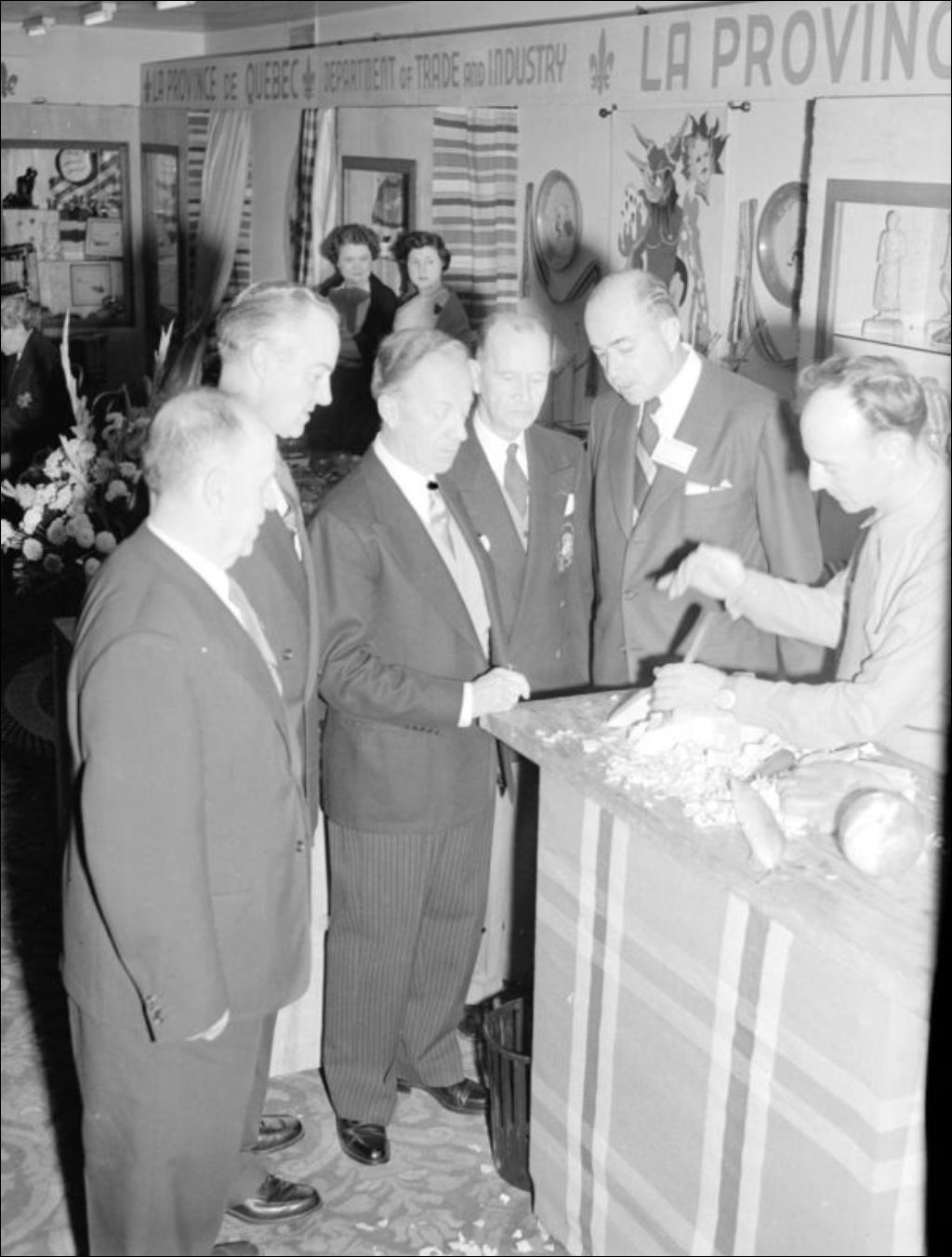 - Congrès de l'American Hotel Association qui s'est tenu à Montréal. Nous apercevons le kiosque de la province de Québec (E6,S7,SS1,P200634 et E6,S7,SS1,P200635). Les congressistes sont réunis (E6,S7,SS1,P200639). J.-Paul Beaulieu, ministre du Commerce et de l'Industrie prédide la cérémonie d'ouverture (E6,S7,SS1,P200638) et discute en entrevue (E6,S7,SS1,P200637). Parmi les invités, nous reconnaissons Jean-Marie Gauvreau de l'École du Meuble et Gérard Delage (E6,S7,SS1,P200640)