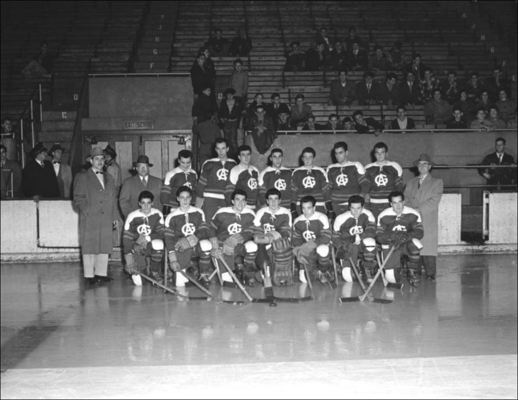 - Équipes de hockey. Nous apercevons l'équipe Centrale (E6,S7,SS1,P20085) et l'équipe constituée probablement des étudiants de l'École des Arts Graphiques située sur la rue Kimberley à Montréal (E6,S7,SS1,P200858). Nous remarquons l'équipe Tech provenant de l'École Technique de la rue Sherbrooke Ouest à Montréal (E6,S7,SS1,P200859) et l'équipe des étudiants du Mont-Saint-Antoine de la rue Sherbrooke Est à Montréal (E6,S7,SS1,P200860)
