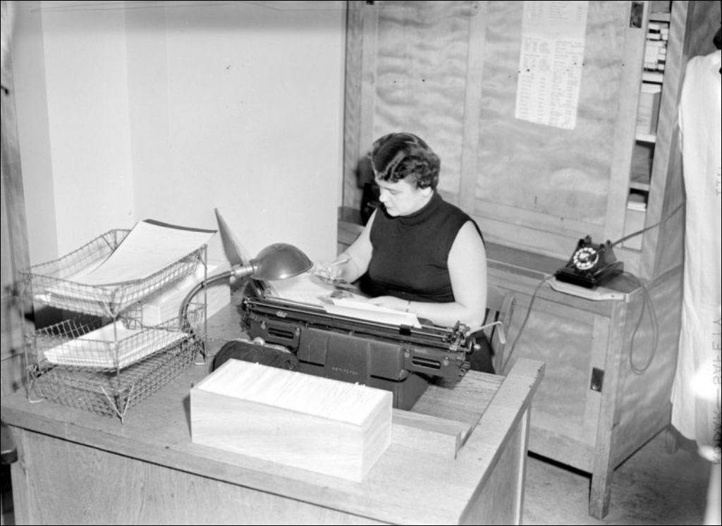 G. Fournier. Bureau (GB), 1953, Archives nationales à Montréal, Fonds Ministère de la Culture et des Communications, (06M,E6,S7,SS1,D200892-200892), Photographe non identifié.