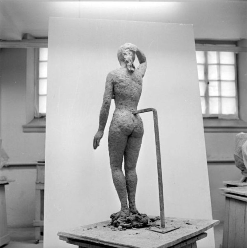 - Il s'agit de travaux de moulage en terre glaise représentant des corps de femmes effectués par les élèves de l'École des Beaux-Arts située sur la rue Saint-Urbain à Montréal. Reportage créé pour M. Meroz, École des Beaux-Arts