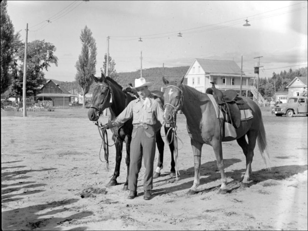 - Nous observons des chevaux et des bovins paradant devant les visiteurs. À ces images s'ajoutent celles d'un restaurant et d'une démonstration de scie à chaîne. Par ailleurs, plusieurs participants et visiteurs arborent un chapeau portant l'inscription Exposition St-Jovite. Photographies exécutées pour monsieur A. Noël, agronome