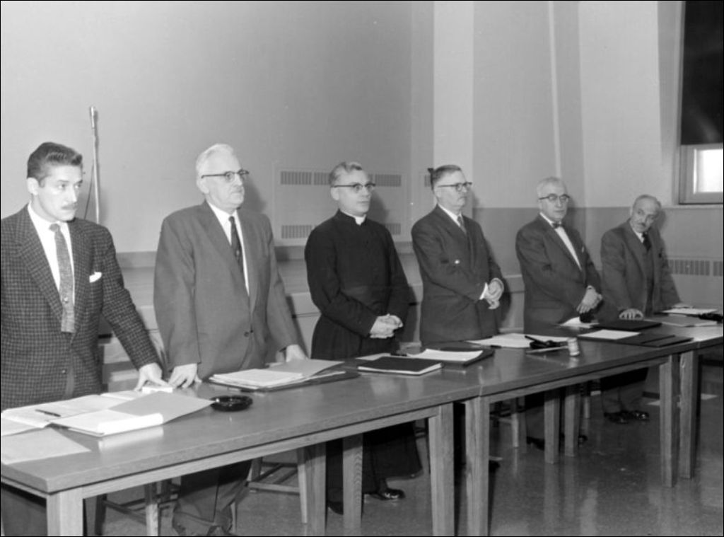 - Le personnel enseignant de l'École est immortalisé sur une photo de groupe. On observe aussi certains membres de l'administration prononçant un discours. Par ailleurs, l'inauguration se termine par une bénédiction des lieux. Photographies exécutées pour monsieur R. Prévost