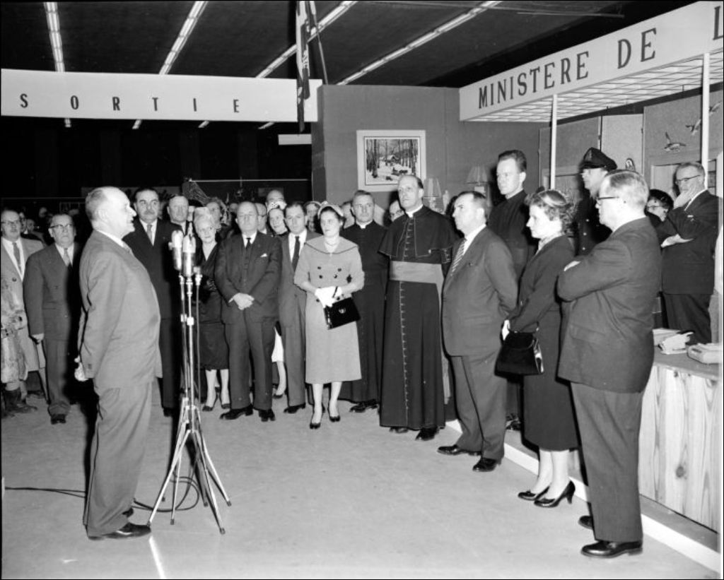 - Nous apercevons le stand de Pierrette Leclaire (P216060) ainsi qu'un potier (P216058). Mgr Irénée Lussier assiste à la cérémonie de la coupe du ruban (P216057, P216059) et discute avec des invités (P216061). Dossier réalisé pour M. J. M. Gauvreau