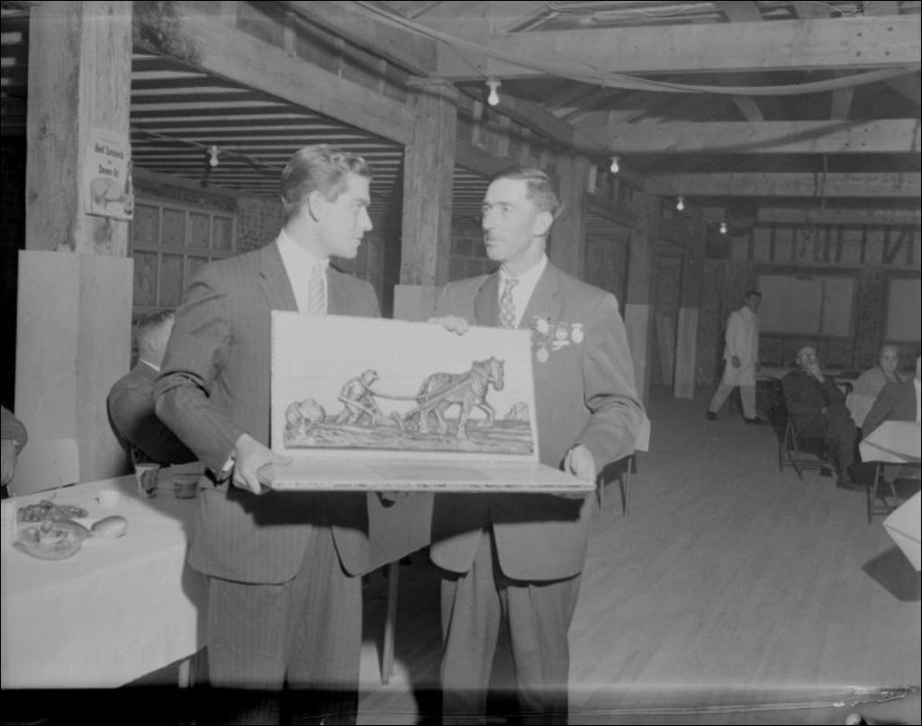 - Les participants utilisent une charrue à soc pour labourer la terre (P223956 à P223958, P223968, P223970, P223971). À ces images s'ajoutent celles des gagnants recevant leur prix (P223955, P223969). Photographies réalisées pour J. A. Lafortune, agronome