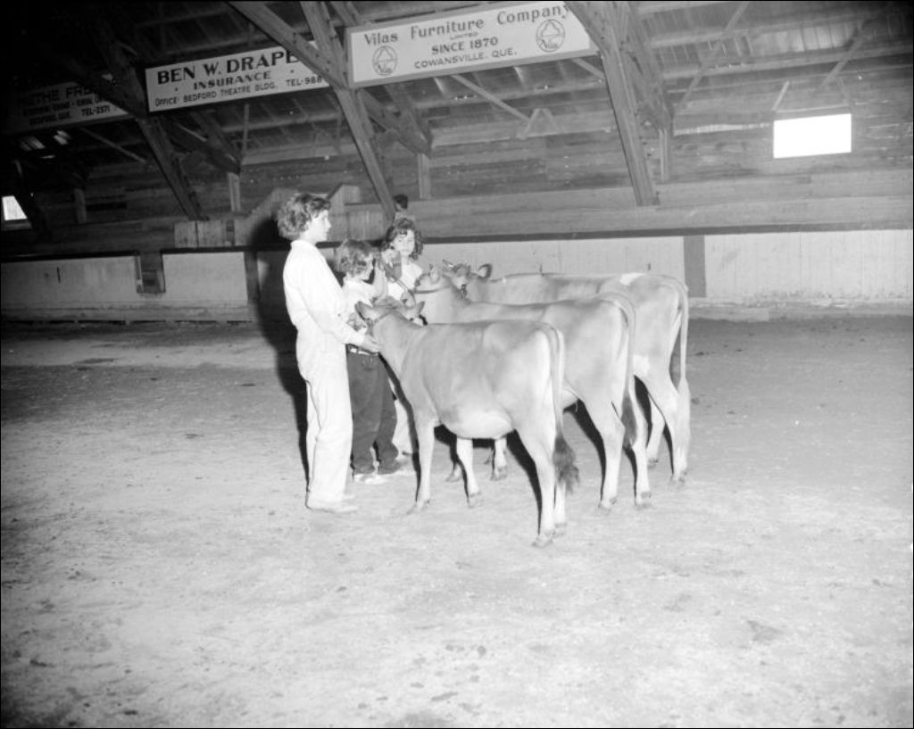 Exposition bovine organisé par le Club d'Ayrshire de Bedford. Des cultivateurs, des artisants et des représentants des ventes sont également présents pour l'évènement, Vers 1960, Archives nationales à Montréal, Fonds Ministère de la Culture et des Communications, (06M,E6,S7,SS1,D228002-228022), Adrien Hubert.