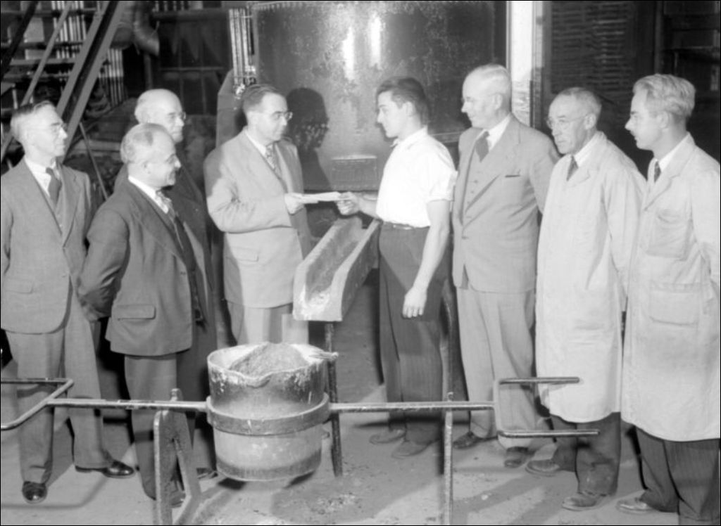 - Ce dossier informe sur la fonderie de l'École technique, située rue Sherbrooke Ouest à Montréal ainsi que sur le personnel de l'établissement. Nous apercevons aussi l'empreinte d'un moule à coquilles duquel est extrait un engrenage de métal (E6,S7,SS1,P041789). Dossier réalisé pour la Revue technique du ministère de la Jeunesse