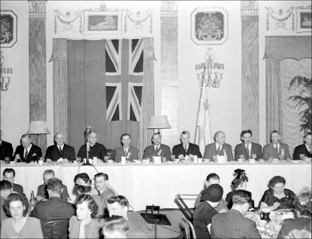 - Banquet organisé par le Conseil d'administration des jardiniers maraîchers à l'hôtel Mount Royal situé sur la rue Peel à Montréal. Images réalisées por le Service de l'information du ministère de l'Agriculture
