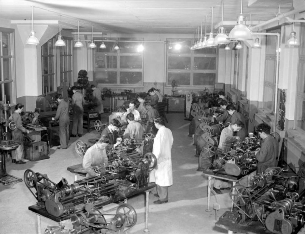 - Bâtiment et ateliers de l'École des arts et métiers de Saint-Henri à Montréal. Nous retrouvons les étudiants à l'atelier de menuiserie (E6,S7,SS1,P49404 et E6,S7,SS1,P49406). Reportage produit pour l'École des arts et métiers, ministère de la Jeunesse