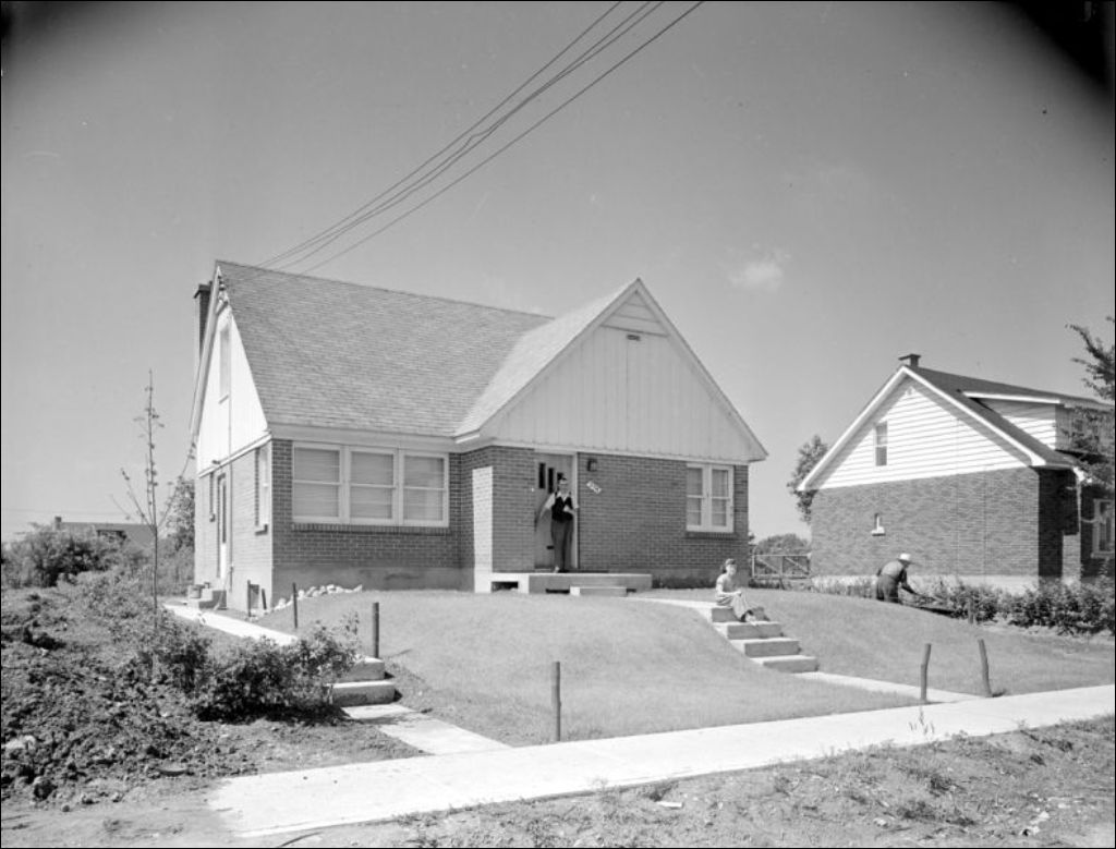 - Il s'agit de résidences à Montréal. Nous apercevons des propriétés privées, les rues en construction d'un quartier résidentiel et les cours arrière des maisons