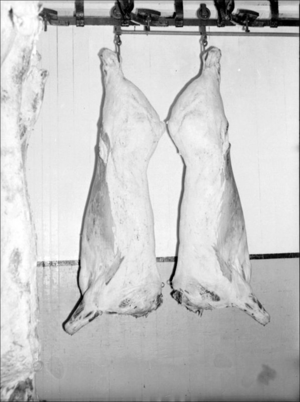 - Il s'agit de quartiers de viande. Nous remarquons un quartier étiquetté au nom de la compagnie Wilsh Limited. dossier produit pour le ministère de l'Agriculture