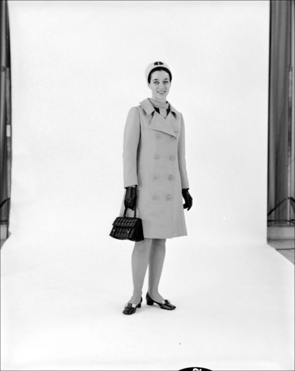 - Madame Hone du ministère de l'Industrie et du Commerce a fait prendre ces clichés de l'uniforme des hôtesses au pavillon du Québec à Montréal. Il s'agit d'un trois pièces (robe, veste et manteau). Les accessoires incluent chapeau, gants, sac à main et souliers. Les séances de photos auraient eu lieu à la Place Ville-Marie à Montréal