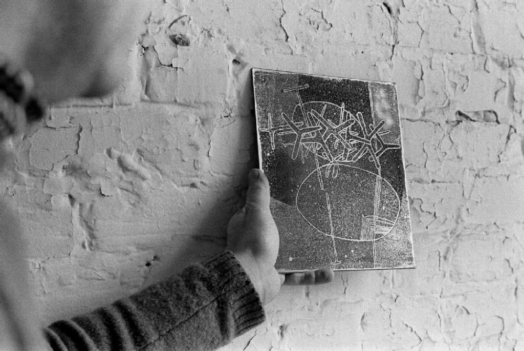 L'artiste Gérard Tremblay dans son atelier. Boulevard Saint-Laurent, Montréal