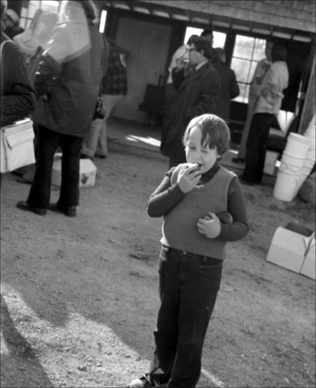 - Scène montrant une randonnée de tracteur dans le verger, la cueillette de pommes et un kiosque vendant des produits de la pomiculture. Événement photographiée à l'intention de Jacques Saint-Hilaire du ministère de l'Agriculture, Service de l'information