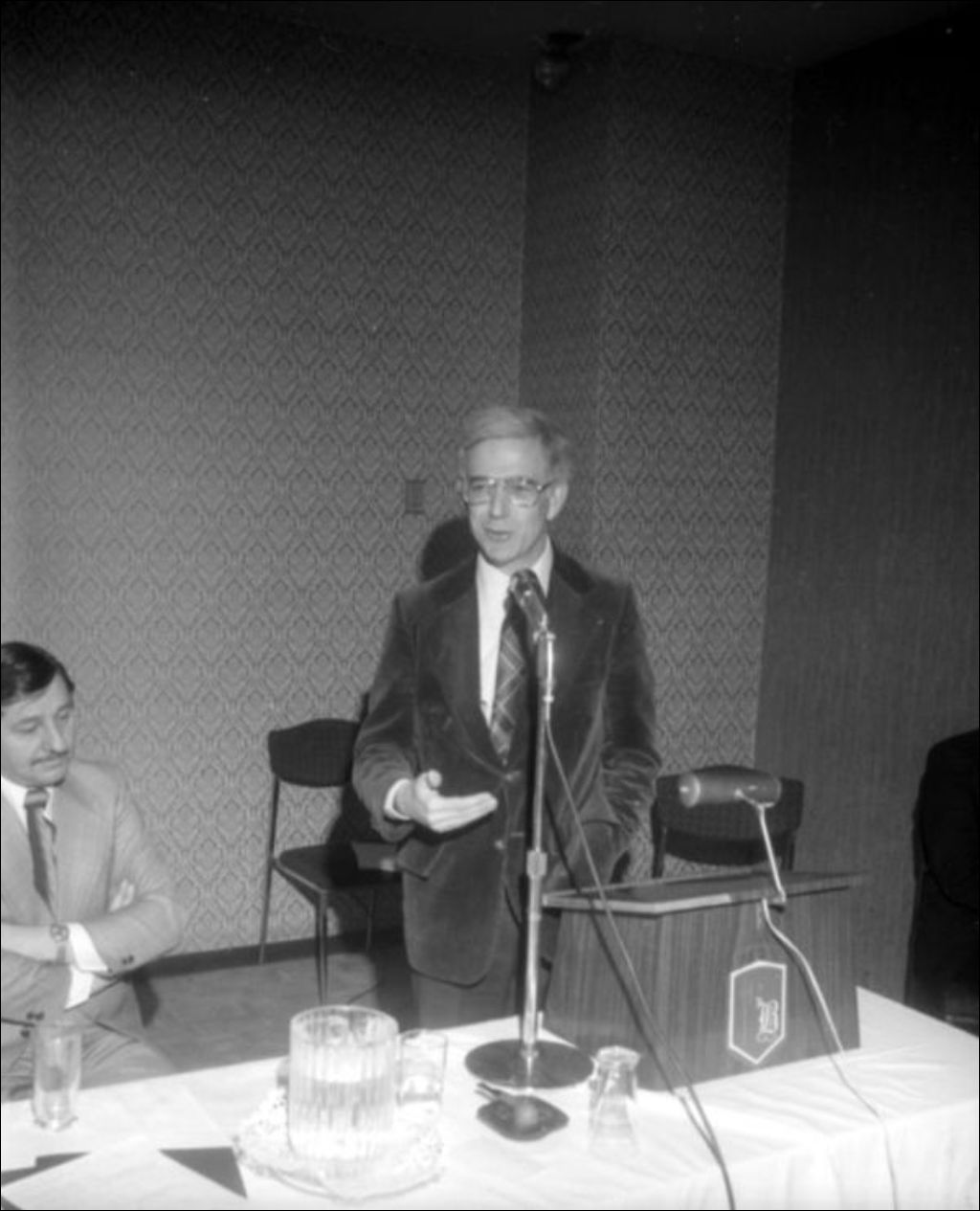 - Les photographies montrent des orateurs et le sous-ministre, probablement attitré au ministère de l'Industrie et du Commerce. Ces images ont été commandées par Jacques-André Chartrand du ministère de l'Industrie et des Communications, Service de la direction des communications
