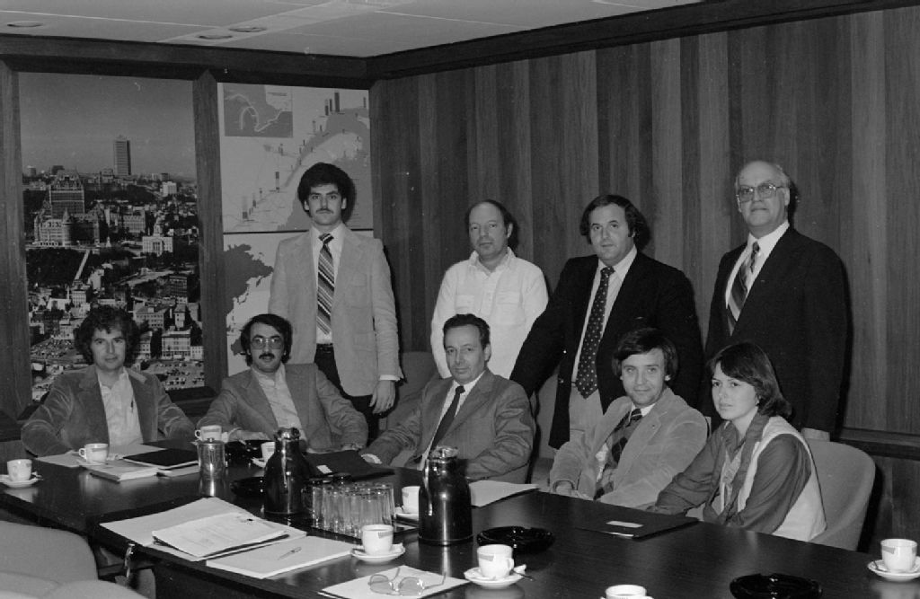 - Départ d'un groupe pour une mission à Bruxelles pendant une exposition du vêtement, salon d'accueil, Place Ville-Marie à Montréal