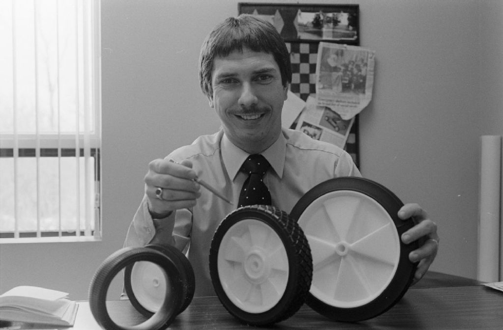 Usine de pneus et de roues. Entreprise Hamelin. Boucherville, 1980, Archives nationales à Montréal, Fonds Ministère de la Culture et des Communications, (06M,E6,S7,SS1,D800126-800126), Adrien Hubert.