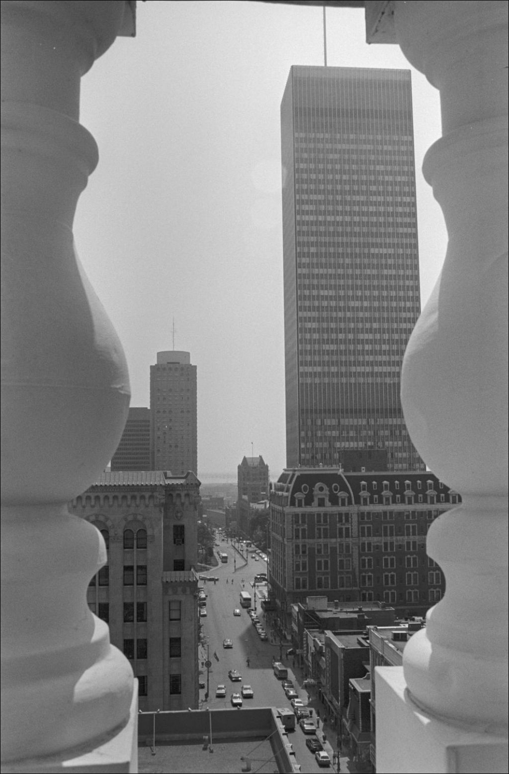 Nous remarquons l'édifice de la compagnie Sun Life, le square Dominion, l'Université du Québec à Montréal et la Place Ville-Marie. Ces clichés ont été produits pour Jules Rochon du ministère des Communications, Service de photographie