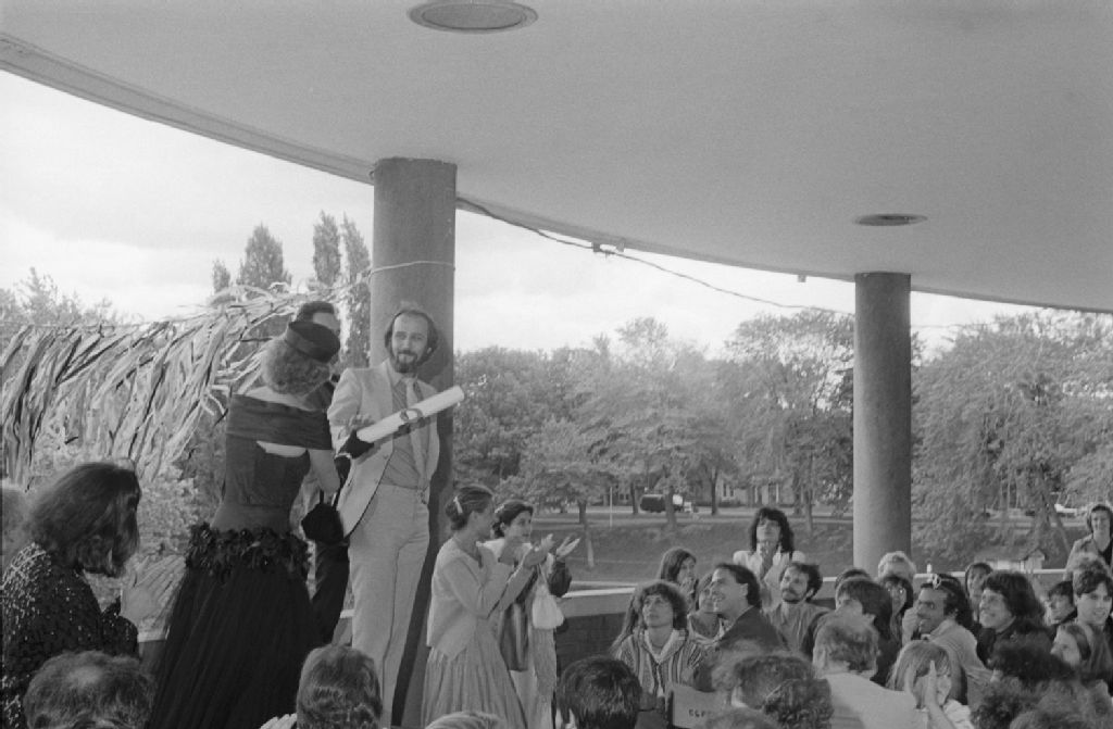 - Nous remarquons les défilés ainsi qu'un orateur prononçant un allocution. Ces photographies ont été commandées par Gilbert Guérin du ministère des Affaires culturelles, Service de théâtre et de danse
