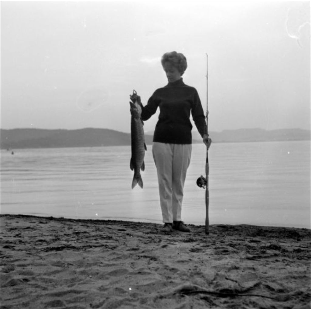 - Il s'agit d'un site de pêche où Lise Masse exhibe un maskinongé (63-16-1, 63-16-4, 63-16-10). Sous les arbres, on observe le lac et les barques au bord de l'eau