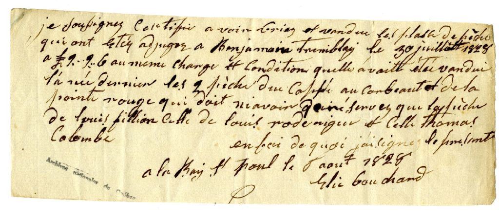 Vente de droits de pêche par Elie Bouchard de Bay [sic] Saint-Paul