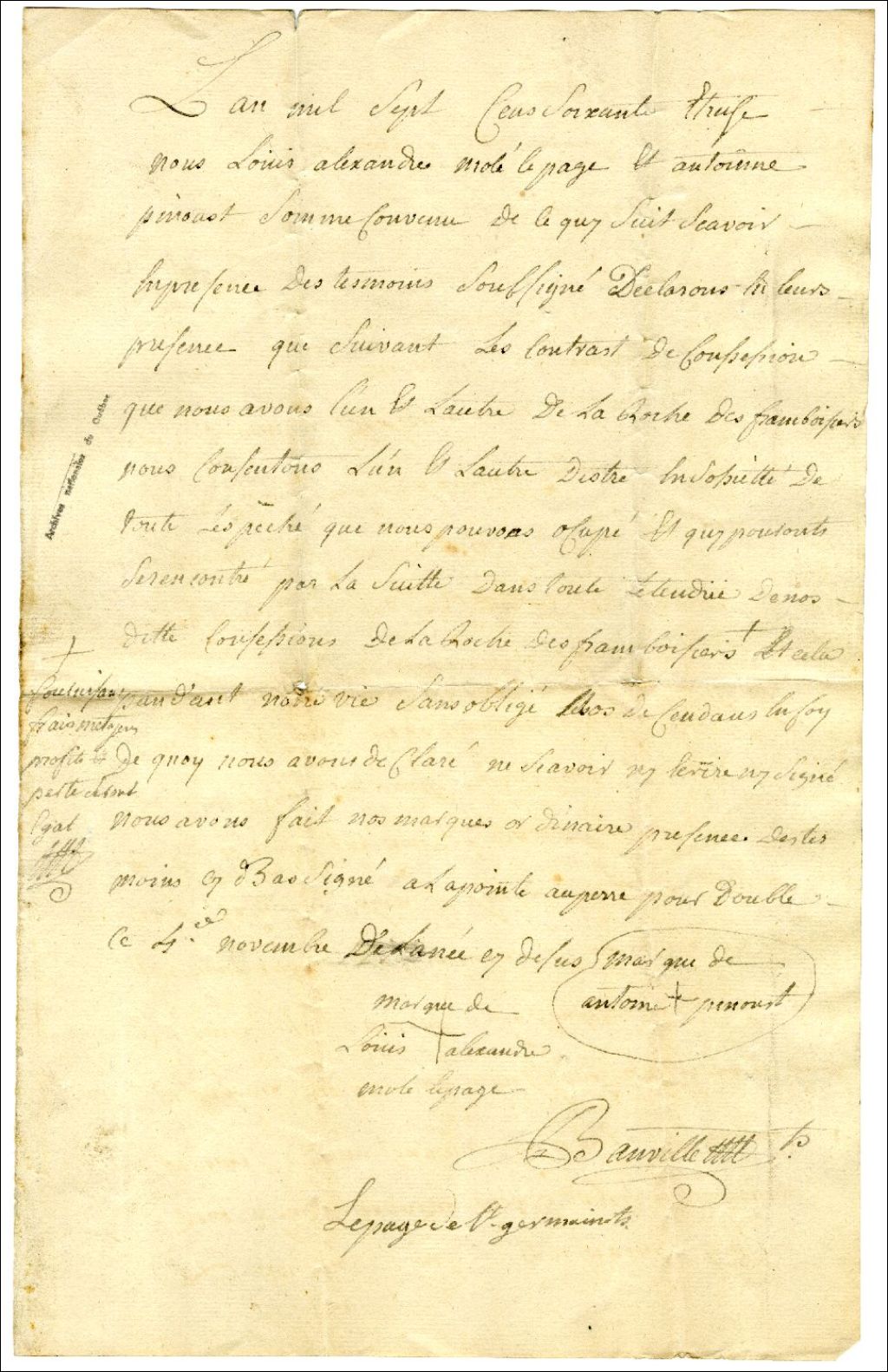 Convention pour les droits de pêche entre Louis Alexandre Molé Lepage et Antoine [Penoust]