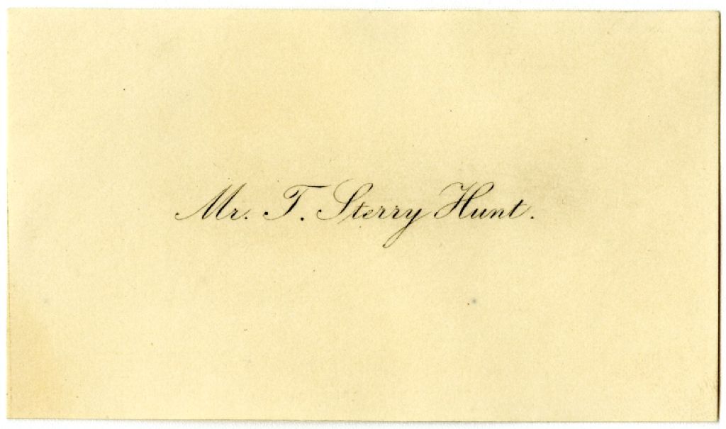 Carte de visite de Mr T. Sterry Hunt avec une enveloppe adressé à U.J. Tessier, [entre 1829 et 1892], Archives nationales à Rimouski, Fonds Famille Tessier, (01R,P1,S1,SS2,P11).