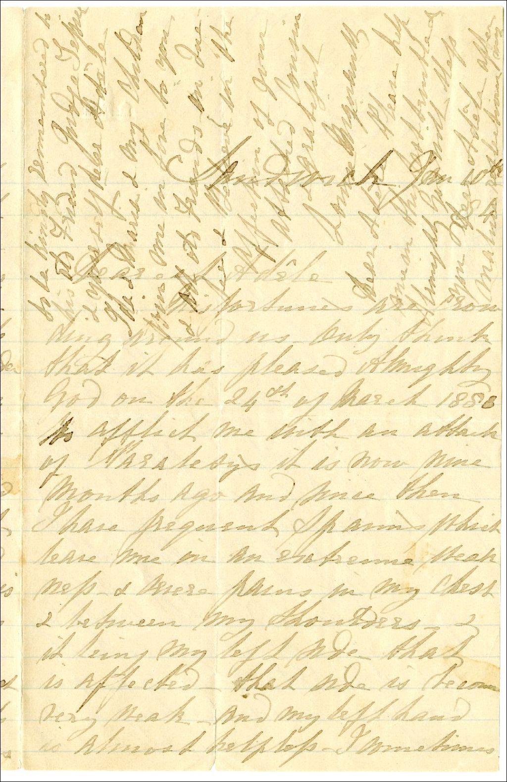 Lettre de Louise [Meyer] Mignault à cousine Marguerite-Adèle Kelly-Tessier, 10 janvier 1884, Archives nationales à Rimouski, Fonds Famille Tessier, (01R,P1,S2,P59).