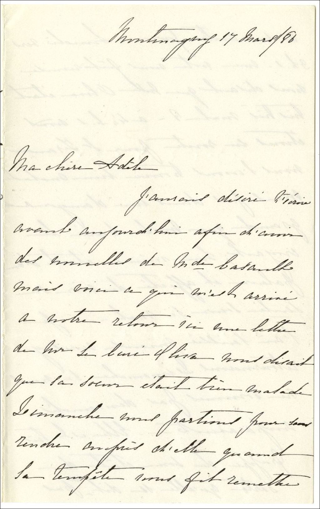 Lettre de Zoé C. Oliva d'Estimauville à sa cousine Marguerite-Adèle Kelly-Tessier