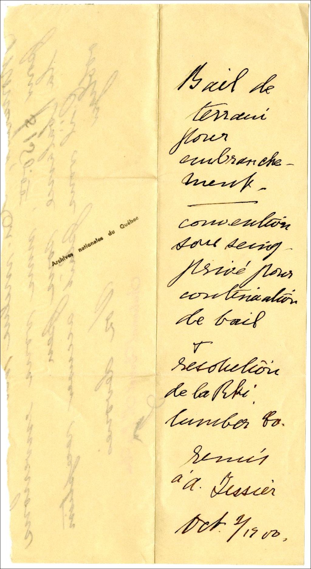 Notes concernant des documents notariés remis à A. [Auguste] Tessier