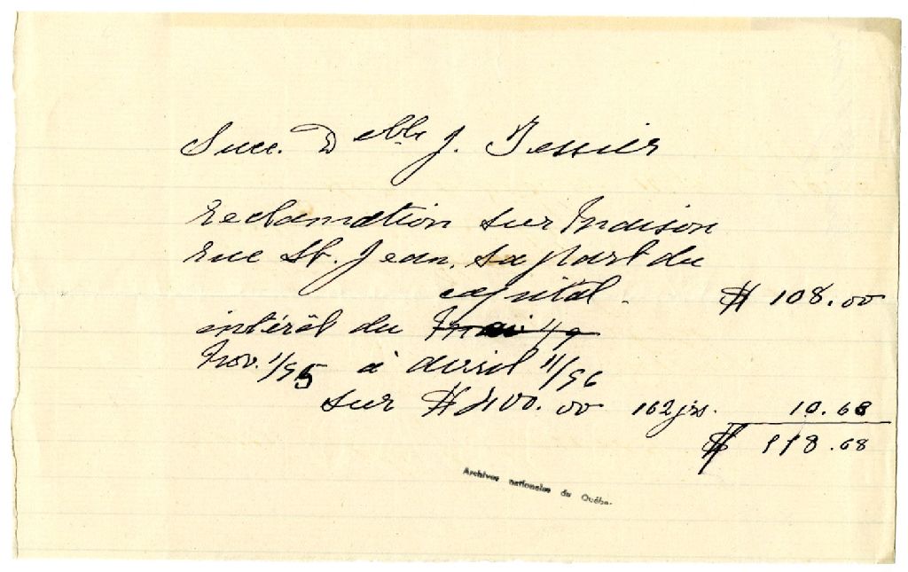 Notes concernant la succession de Julie Tessier, 1896, Archives nationales à Rimouski, Fonds Famille Tessier, (01R,P1,S3,SS2,P88).