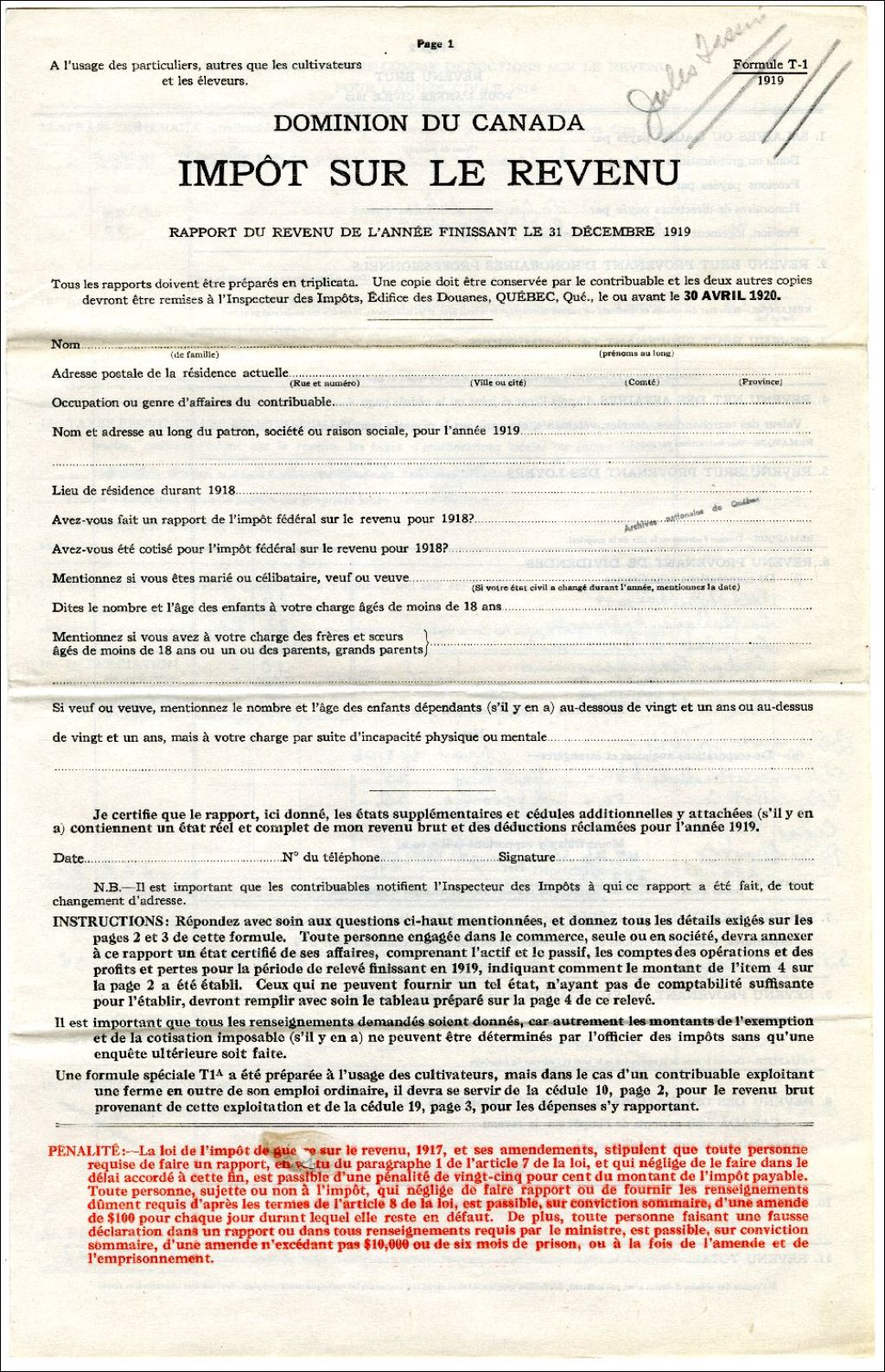 - Rapport d'impôt sur le revenu de Jules Tessier avec avis de cotisation