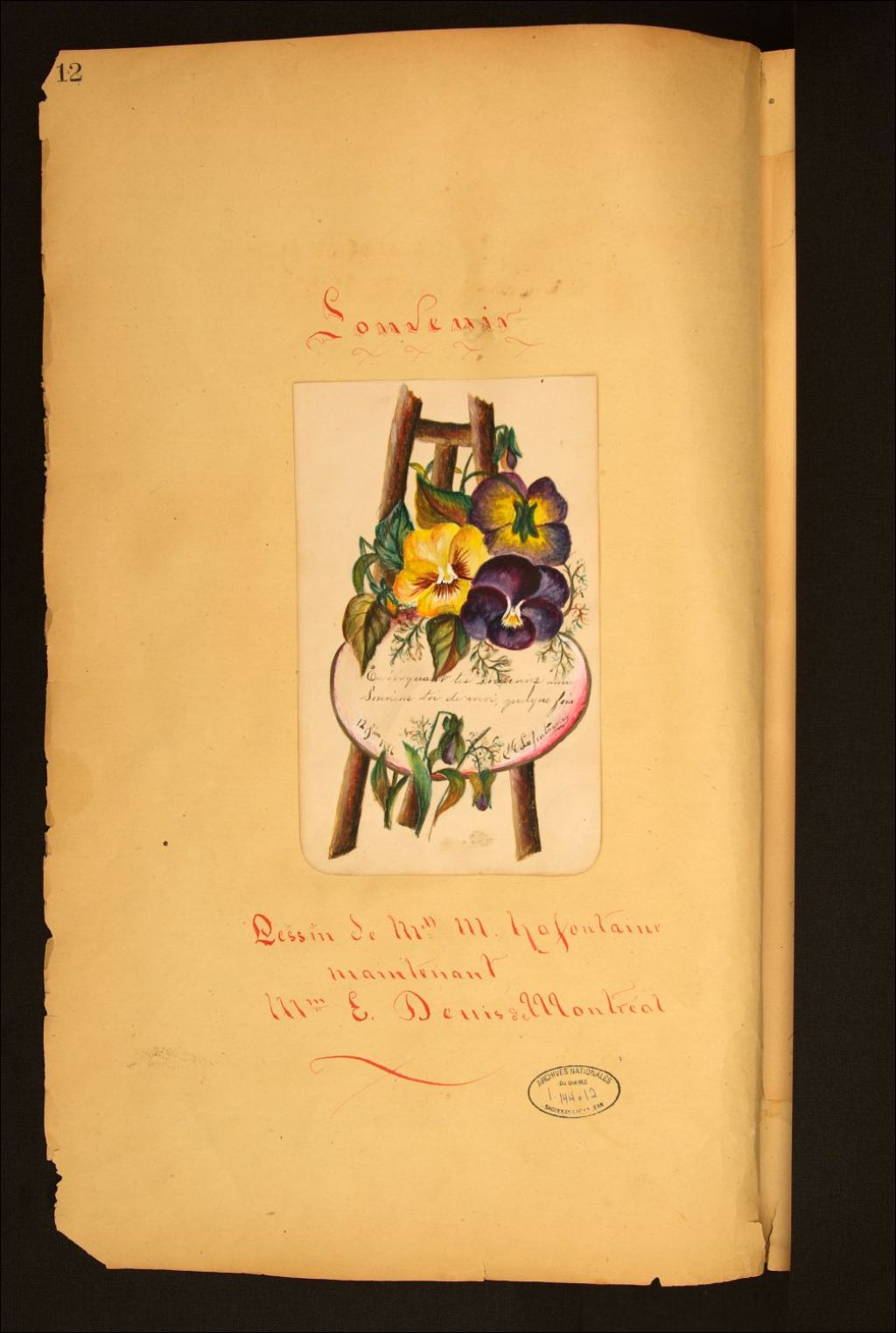 Souvenir de Mlle M. Lafontaine (Mme E. Denis de Montréal)