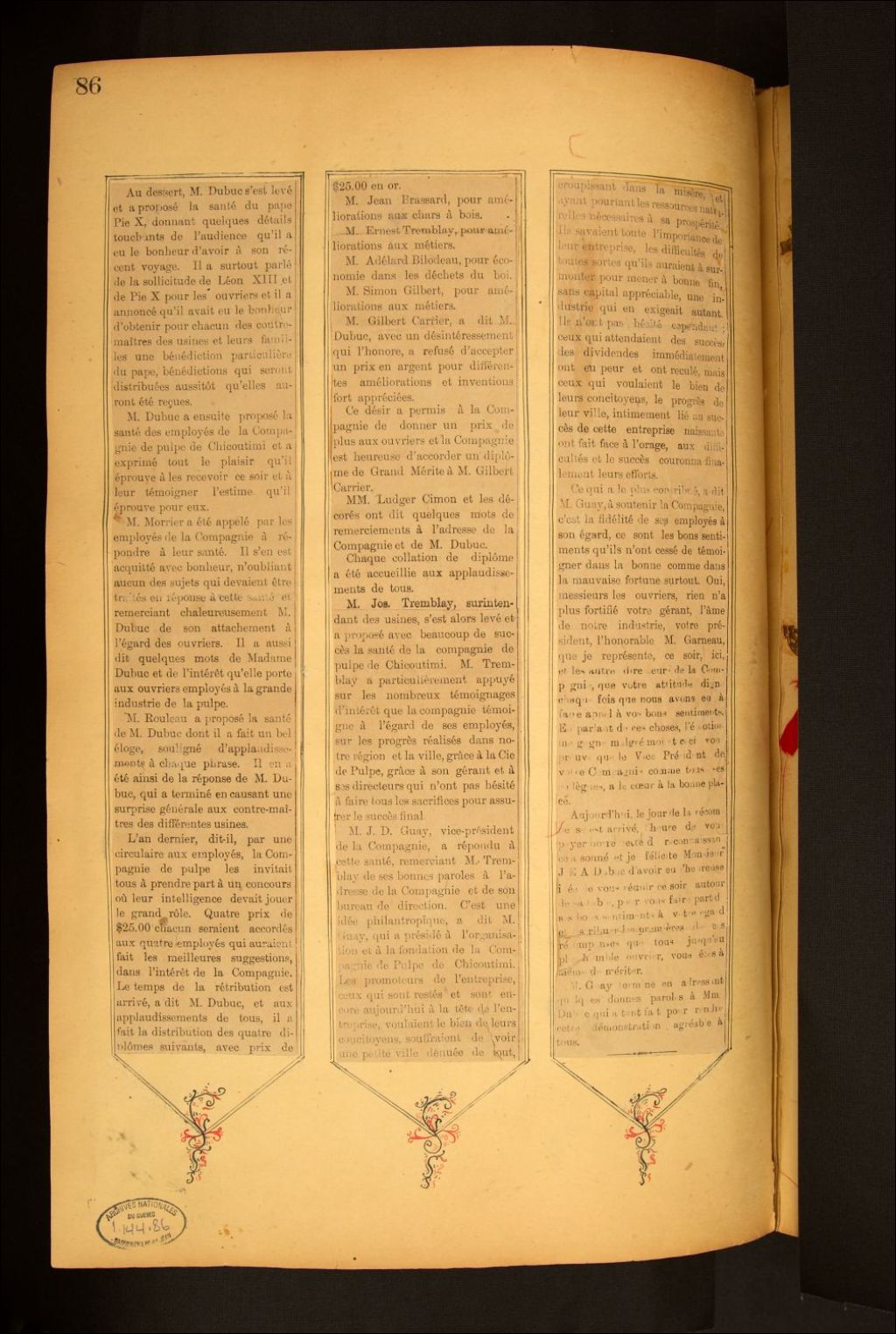 Coupures de journal : un banquet aux contremaîtres de la cie de pulpe de Chicoutimi [suite]