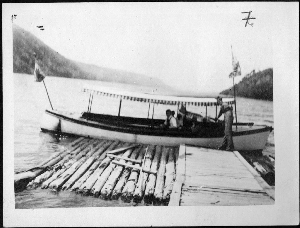 La Petite Hermine au lac Kénogami, [après 1900], Archives nationales à Saguenay, Fonds Famille Dubuc, (02C,P1,D171,P31-7), Photographe non identifié.