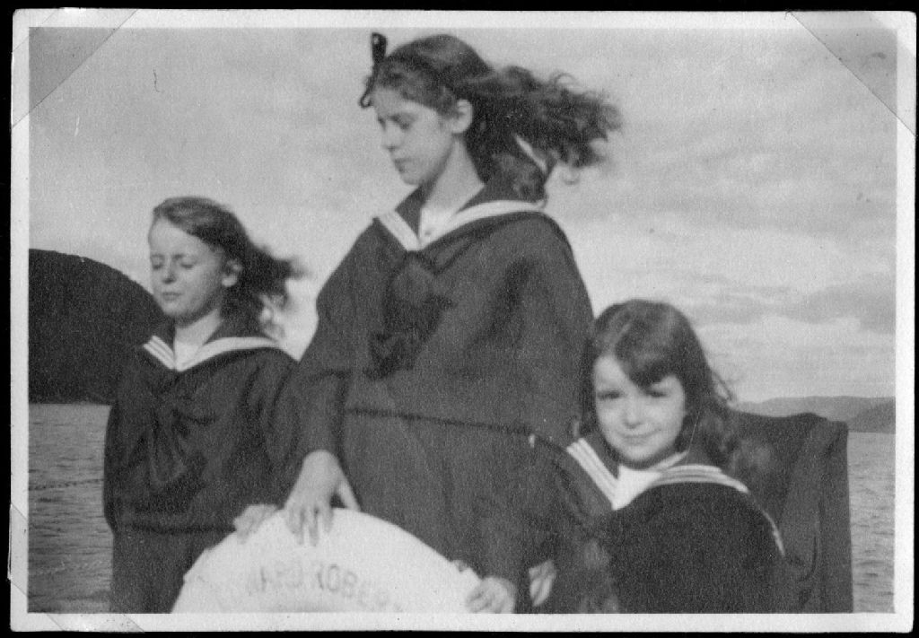 Marthe, Marie et Esther Dubuc sur le remorqueur Édouard-Alfred