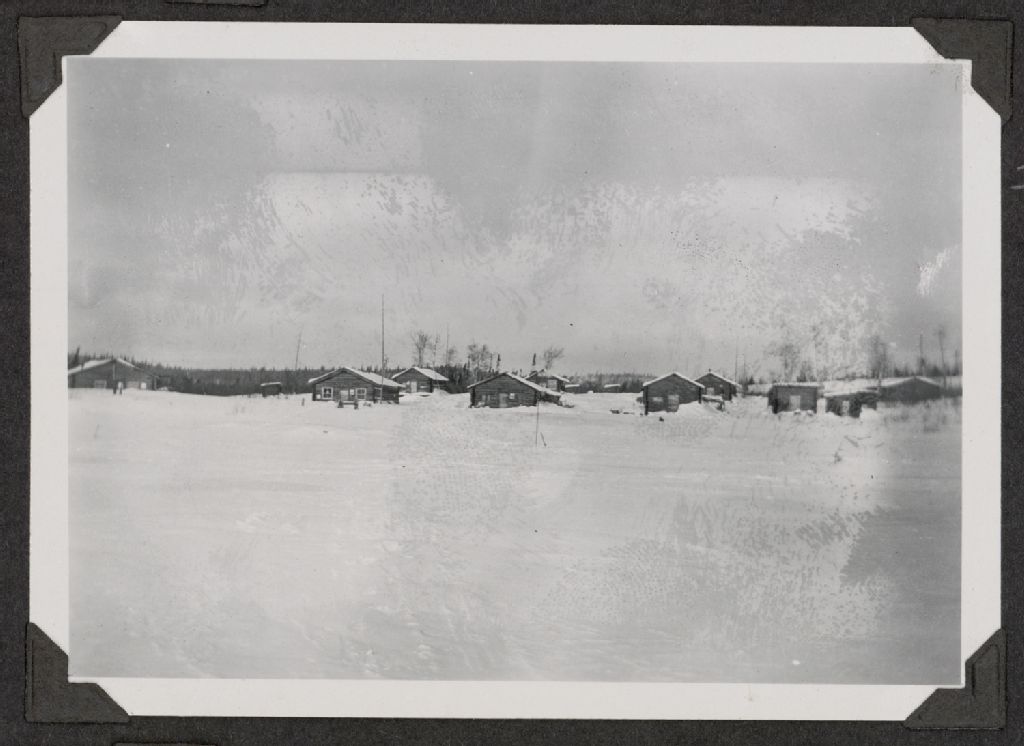 Vue générale des camps en bois rond, [Après 1910], Archives nationales à Saguenay, Fonds Famille Dubuc, (02C,P1,D174,P10-3), Photographe non identifié.