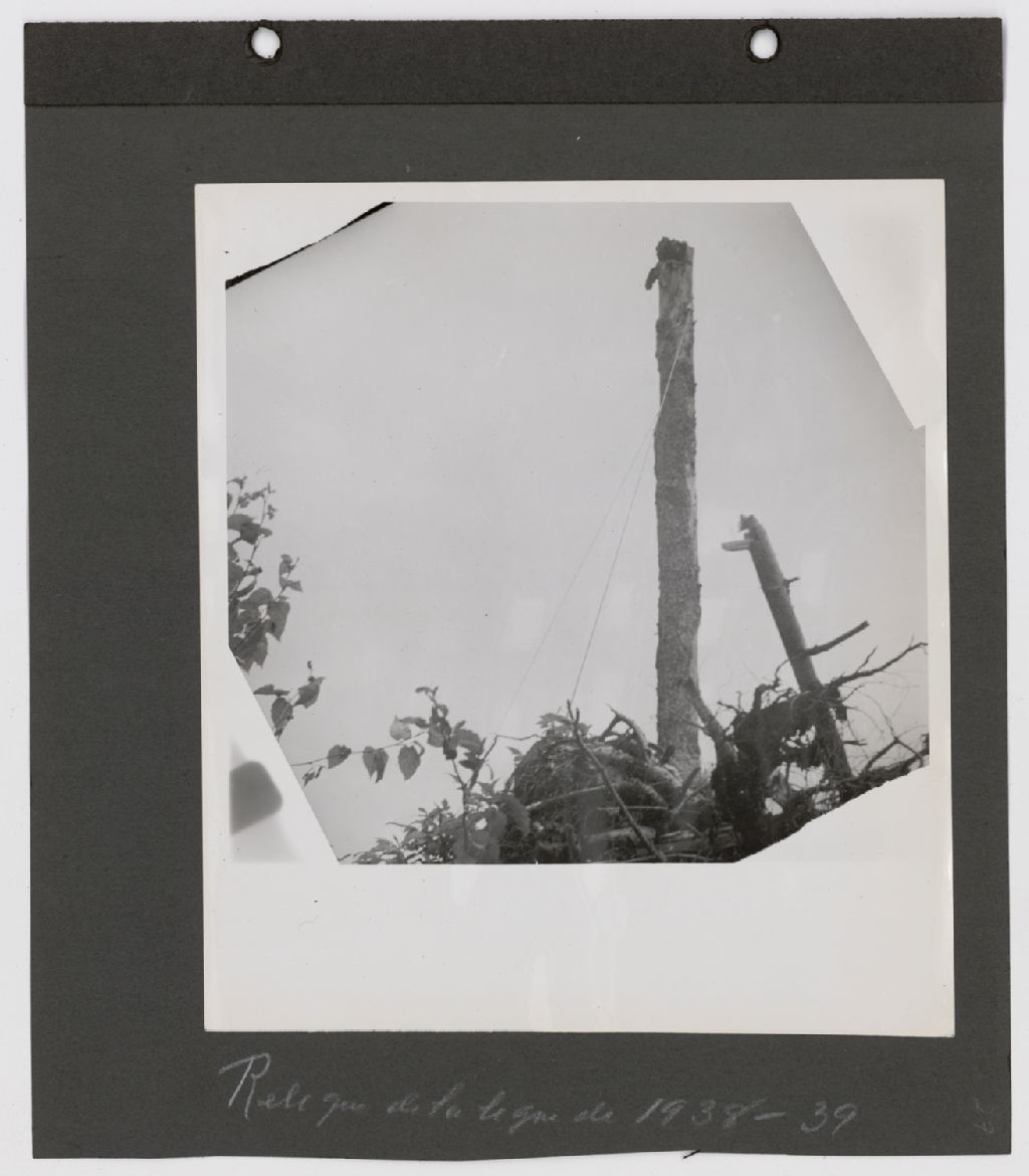 Quelques vestiges de la ligne de 1937-39. Photo de Jean Dubuc, 1950, Archives nationales à Saguenay, Fonds Famille Dubuc, (02C,P1,D174,P27), Photographe non identifié.