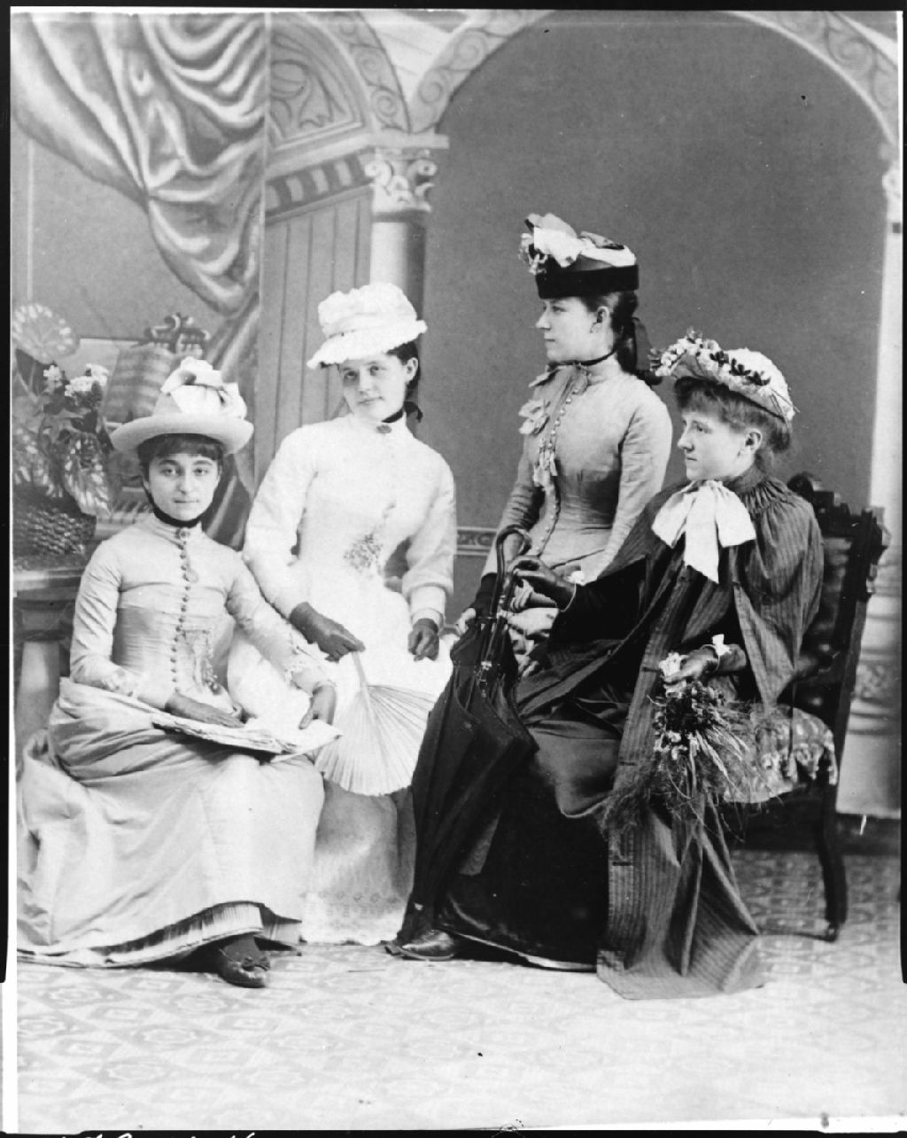 Mlles St-Aubin et Larrivière de Falls River avec Nanette et Anne-Marie Palardy lors d'un voyage à St-Hyacinthe, Août 1889, Archives nationales à Saguenay, Fonds Famille Dubuc, (02C,P1,D178.1,P3), Photographe non identifié.
