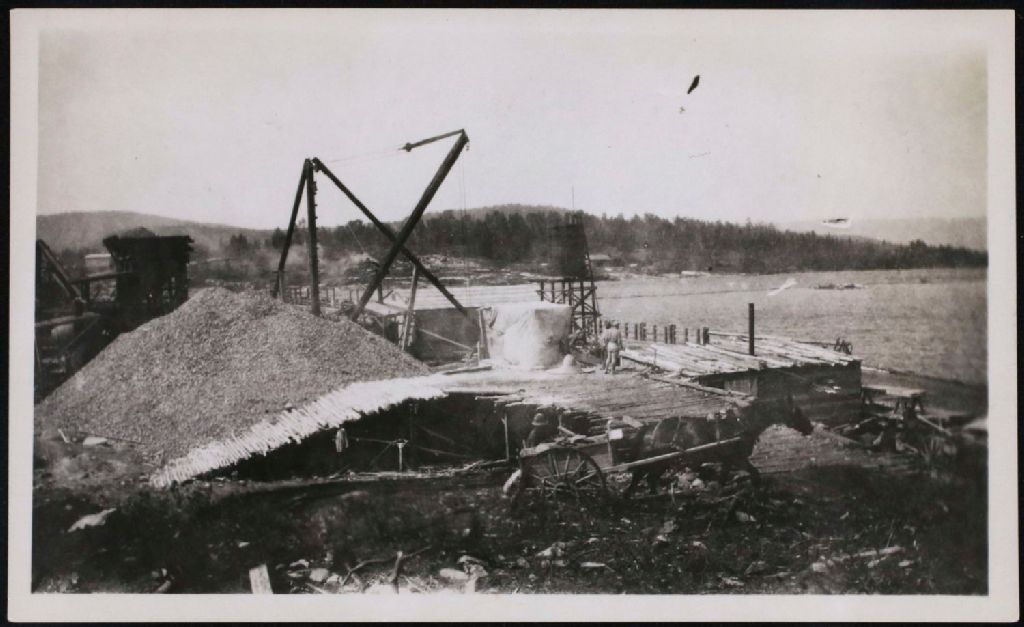 Concasseur au travail, 1923, Archives nationales à Saguenay, Fonds Famille Dubuc, (02C,P1,D178.3,P9), Photographe non identifié.