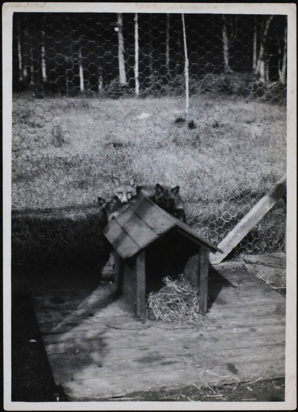 Renards en enclos, [1922-1950], Archives nationales à Saguenay, Fonds Famille Dubuc, (02C,P1,D178.9,P61), Photographe non identifié.
