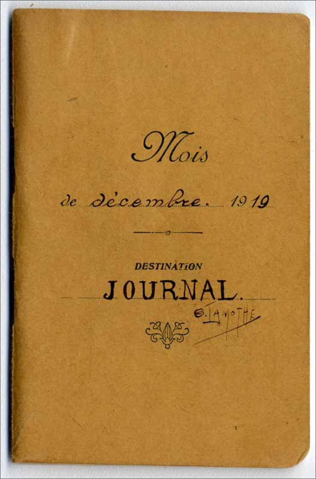 Cette pièce contient les observations, les réflexions et le relevé des activités quotidiennes d'Onésime Lamothe pendant son stage d'études en musique et en sculpture à Paris en décembre 1919